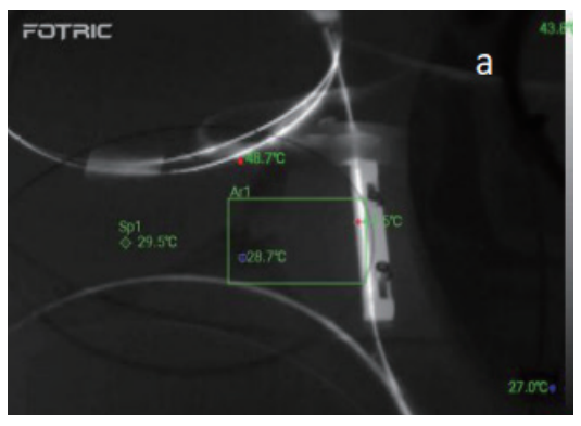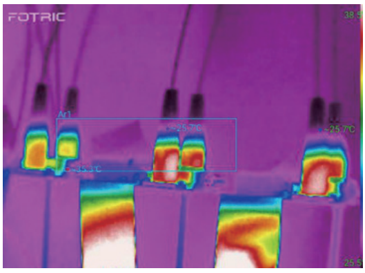 在生產(chǎn)和研發(fā)中都需要關(guān)注焊點(diǎn)與設(shè)備的溫度。以生產(chǎn)為例,一臺(tái)功率在1000瓦的設(shè)備生產(chǎn)一般要50小時(shí)左右,上面有7~8個(gè)焊點(diǎn),在恒溫25℃的環(huán)境中測(cè)試,設(shè)備功率從100、200、300逐級(jí)增加到1000瓦最大功率。使用熱像儀監(jiān)測(cè)所有點(diǎn)的溫度,可以精準(zhǔn)測(cè)溫,及時(shí)知曉溫度值是否在正常范圍內(nèi)。