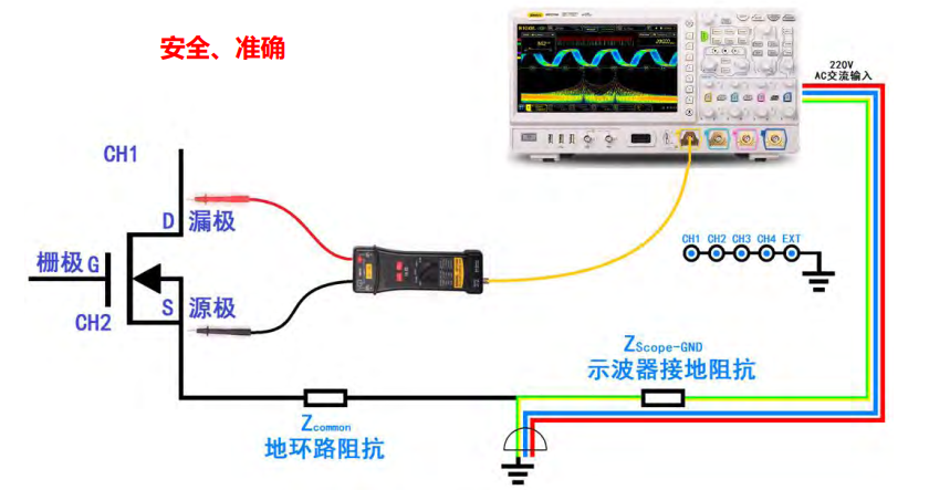 電源測試中大量電壓測試為浮地測試,即不以地作參考的差分電壓測試。