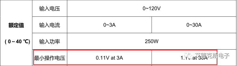 由于晶體管Vce在0V的狀態(tài)下不會(huì)工作,所以電子負(fù)載裝置都規(guī)定了最低工作電壓(圖二),如上圖一示例,電池負(fù)電壓狀態(tài)下放電,電子負(fù)載會(huì)報(bào)錯(cuò),試驗(yàn)無法繼續(xù)進(jìn)行。