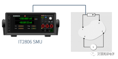 IT2806高精密源表(簡稱SMU):集六種設(shè)備功能于一體(恒流源、恒壓源、脈沖發(fā)生器、6.5位DVM、電池模擬器,電子負載)。在電阻率的測試中,可將IT2806高精密源表切換至恒流源模式,在輸出電流同時量測中間兩探針之間的微小壓降,并搭配免費的PV2800上位機軟件,自動得出電阻率的測量結(jié)果。