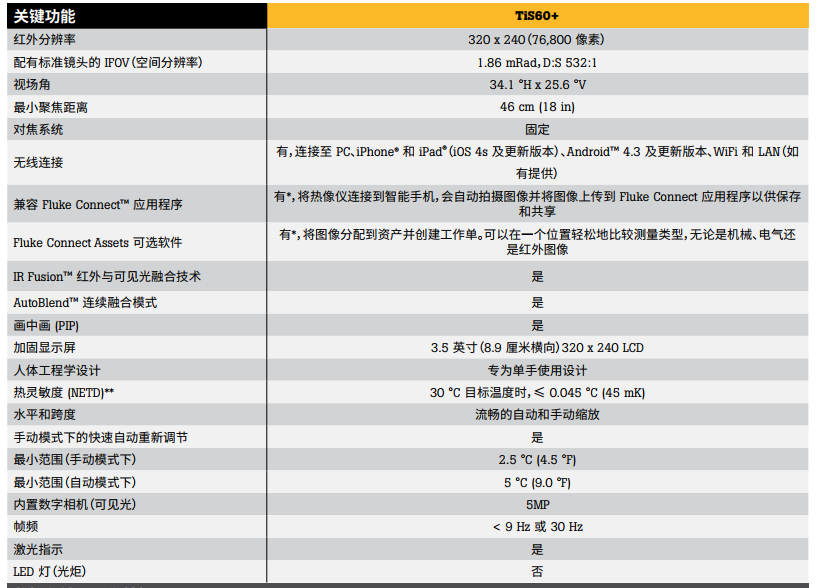 Fluke TiS60+ 紅外熱像儀 30Hz包括: