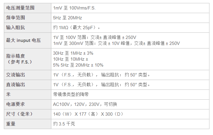 ●測(cè)定電壓范圍1mV~100V、滿刻度11量程