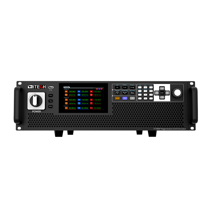 IT7900P系列高性能回饋式電網(wǎng)模擬器提供用戶領(lǐng)先的一體化測(cè)試解決方案,它可以是一臺(tái)大功率交流電源,也可以作為電網(wǎng)模擬器和全四象限功率放大器使用,同時(shí)也是一臺(tái)回饋式的交/直流電子負(fù)載。全四象限運(yùn)行,高效的回饋能力可以將電能無(wú)污染的回饋電網(wǎng),滿足環(huán)保需求的同時(shí)也節(jié)省了大量用電和散熱成本。緊湊式、模塊化、高效率的結(jié)構(gòu)設(shè)計(jì),使IT7900P可以在3U的體積內(nèi)提供15kVA的功率,主從并聯(lián)更可擴(kuò)展功率至960kVA。采用基于彩色觸摸屏的用戶界面,可以直接定義不同波形,豐富的操作模式滿足用戶單相,三相,反相及多通道測(cè)試需求,為測(cè)試提供了較高的靈活性,可以廣泛應(yīng)用于光伏、儲(chǔ)能系統(tǒng)、新能源汽車等多個(gè)領(lǐng)域。