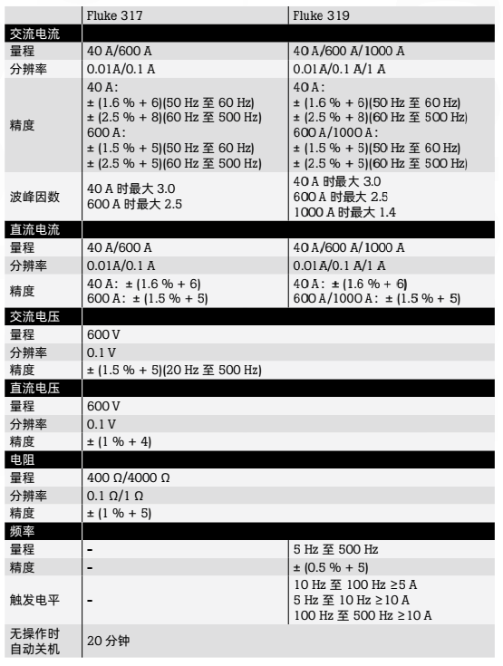 ● 1000 A 交流 / 直流電流測(cè)量 ( 僅 Fluke 319)