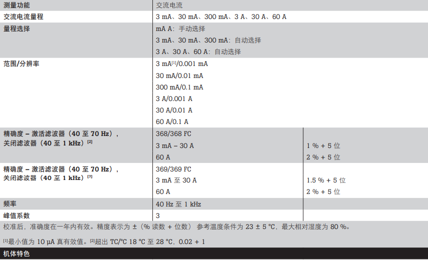 *除FC及相關(guān)功能外,369 具有與 369 FC相同的電氣性能與測量功能