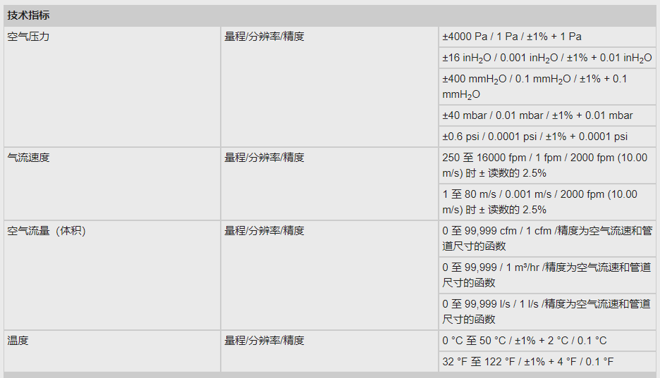 功能強大的空氣流量檢測儀,可以測量壓差、靜壓力、空氣流速和流量