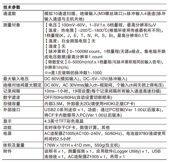 測量指南×1, CD-R (數(shù)據(jù)采集應(yīng)用軟件Logger Utility,使用說明書PDF版) ×1, USB連接線×1, AC適配器Z1005 ×1