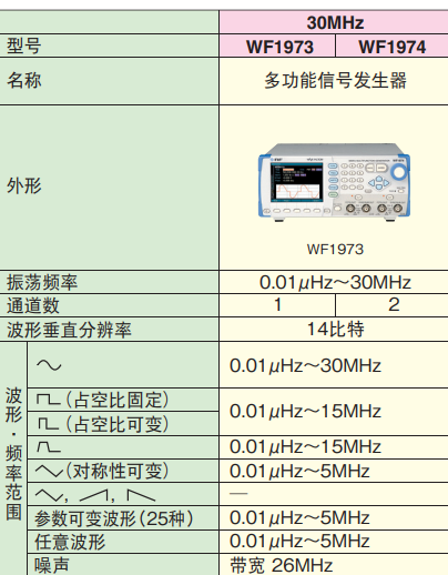 WF1973/WF1974具有高超的技術(shù)指標(biāo),對(duì)各種各樣的應(yīng)用可提供高穩(wěn)定性、 高可靠性、高精度的信號(hào),包括高超的頻率精確度和振幅精確度、 精細(xì)的設(shè)定分辨率等。