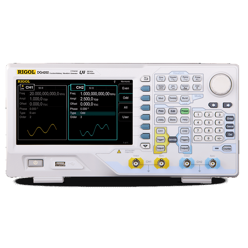DG4000系列集函數(shù)發(fā)生器,任意波形發(fā)生器,脈沖發(fā)生器,諧波發(fā)生器,模擬/數(shù)字調(diào)制器,頻率計(jì)等功能于一身的多功能信號(hào)發(fā)生器;該系列所有型號(hào)皆具有2個(gè)功能完全相同的通道,通道間相位可調(diào)。