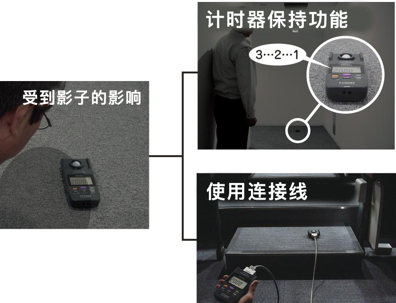 能夠在遠(yuǎn)離照度計(jì)的地方進(jìn)行測(cè)量,所以不會(huì)受到操作者的衣服或影子等的影響。