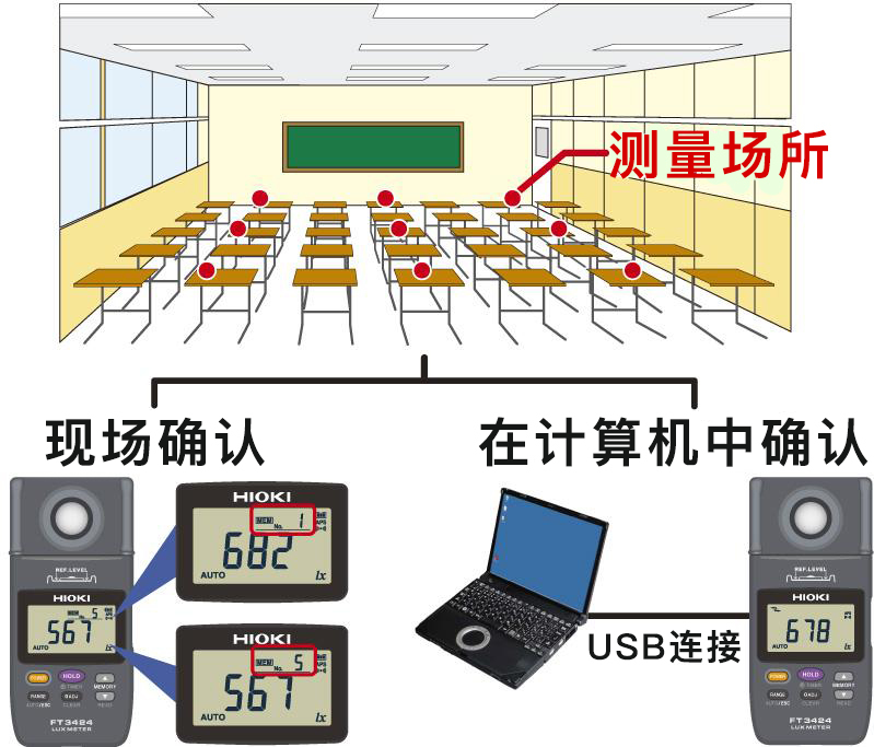 能將多個(gè)測(cè)量場(chǎng)所的測(cè)量值保存在內(nèi)存中(最多99組數(shù)據(jù))。 節(jié)省了手工記錄所測(cè)的照度的工夫。 主機(jī)讀取所存數(shù)據(jù),或使用USB通訊讀取至計(jì)算機(jī)中。 (可保存為TXT格式)
