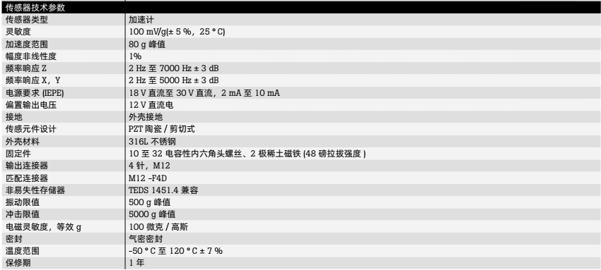 三軸加速度計(jì)、磁鐵安裝座、帶膠粘劑的安裝墊套件、加速度計(jì)快速斷開電纜