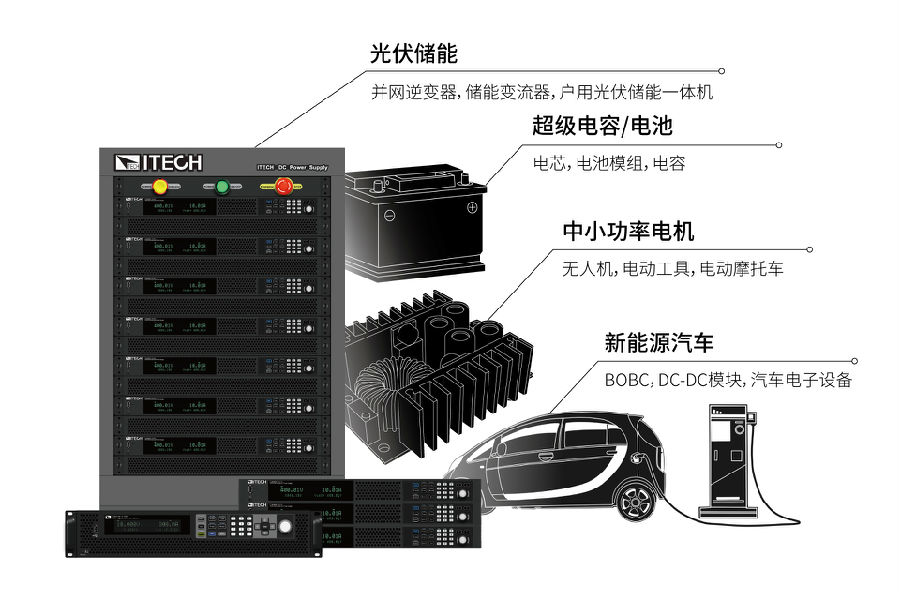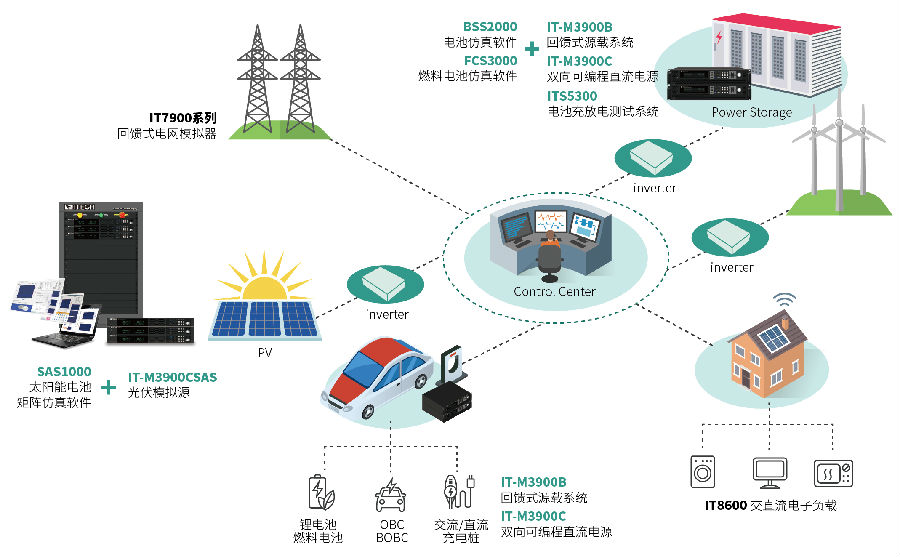 IT-M3900C作為一臺電池模擬器,不但以模擬電池給給逆變器供電,同時也可以滿足儲能變流器(PCS)、各類儲能設(shè)備以及OBC/BOBC的測試需求。