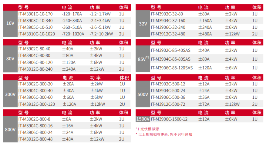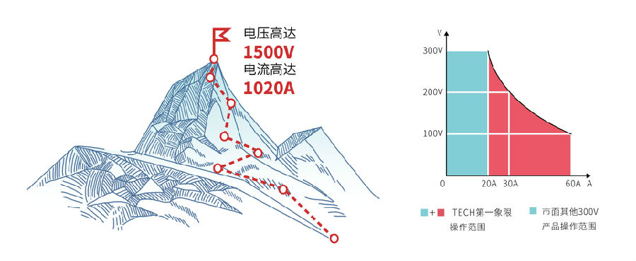IT-M3900C全系列共有28個型號,輸出電壓從10V~1500V,單機(jī)輸出電流最大可達(dá)1020A。采用寬范圍的輸出設(shè)計,相較于傳統(tǒng)固定范圍輸出直流電源,為用戶提供了更多的電壓和電流組合,讓使用更加靈活。單臺電源就可以涵蓋用戶廣闊范圍的應(yīng)用需求,大幅降低電源系統(tǒng)搭建的復(fù)雜度及占用空間。