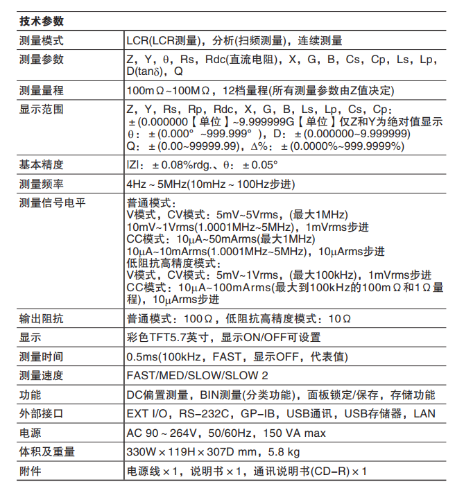 一臺儀器即可實現(xiàn)LCR測量、DCR測量、掃頻測量的連續(xù)測量和高速測量